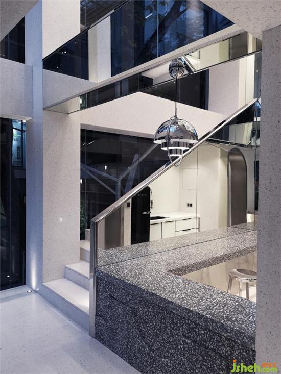 ▼ 水磨石、不銹鋼、玻璃三種現(xiàn)代材質(zhì)之間的對話