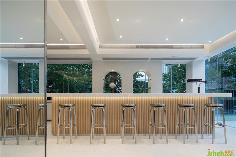 ▼ 四面通透的開放式水吧,員工在這里獲得休閑和放松