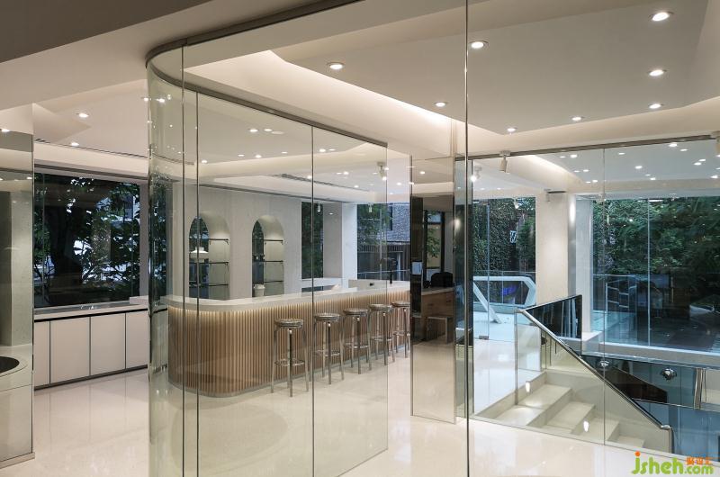 The office area can accommodate 50 people, using internet open-office structure to facilitate staff communication. A large number of glass and mirror are used as partition to enlarge the space visually.