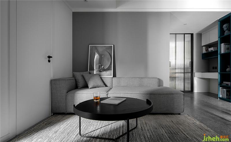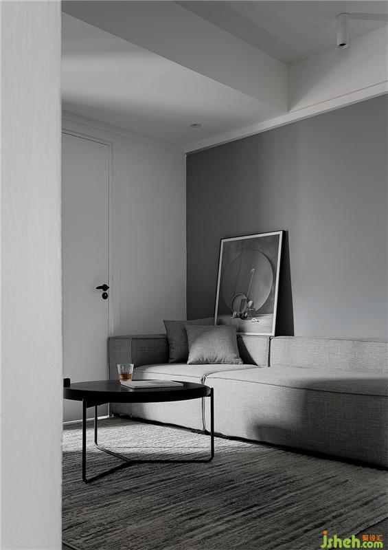 室內(nèi)設(shè)計(jì)師重新布局的客廳能夠恰恰放下三人位沙發(fā),保證客廳功能的完整性。黑色茶幾的加入豐富空間的層次,柜子色調(diào)與空間色調(diào)形成反差,擴(kuò)寬了空間的視覺張力,簡(jiǎn)潔干練的同時(shí)不會(huì)顯得單一。