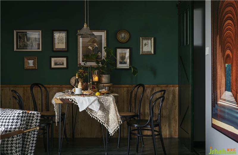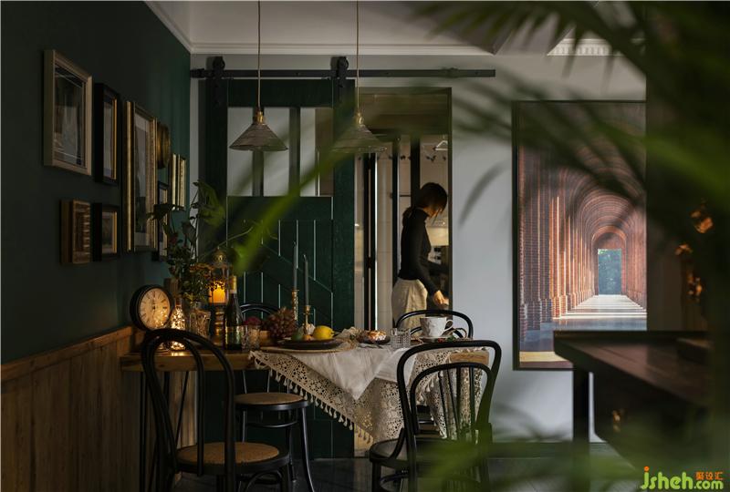 客餐廳延續(xù)暖色老木板元素,整個空間采用了質樸的棕色,紅色同色系作為輔助色,墻面采用灰色為主調,轉換空間畫面的同時,隨著光影變化,讓空間更具沉穩(wěn),過道處充滿藝術氣息的掛畫,更給空間帶來了藝術氣息。