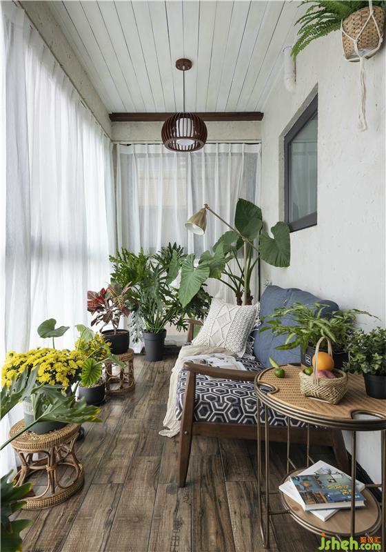 陽(yáng)臺(tái)墻面用的環(huán)保自然地稻草漆,在植物的綠意中包圍下,一種悠閑開(kāi)闊的草原畫面感油然而生,敬畏生命,享受自然。