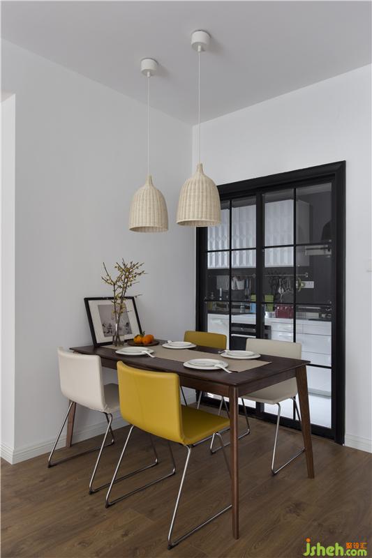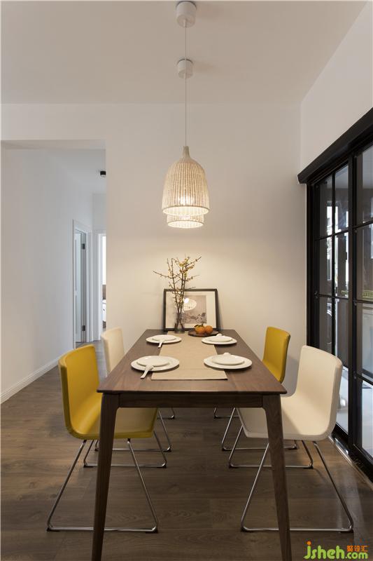室內(nèi)設(shè)計師對家具的選購,均為去風(fēng)格化,挑選的物件都是屋主人喜歡的。餐廳加入了黃色的餐椅來點綴,與桌上黃色臘梅相互呼應(yīng),配上暖色的燈光、隨意擺放的畫,自然而溫馨。