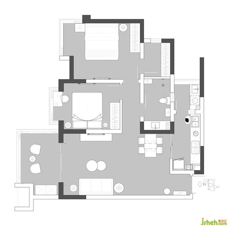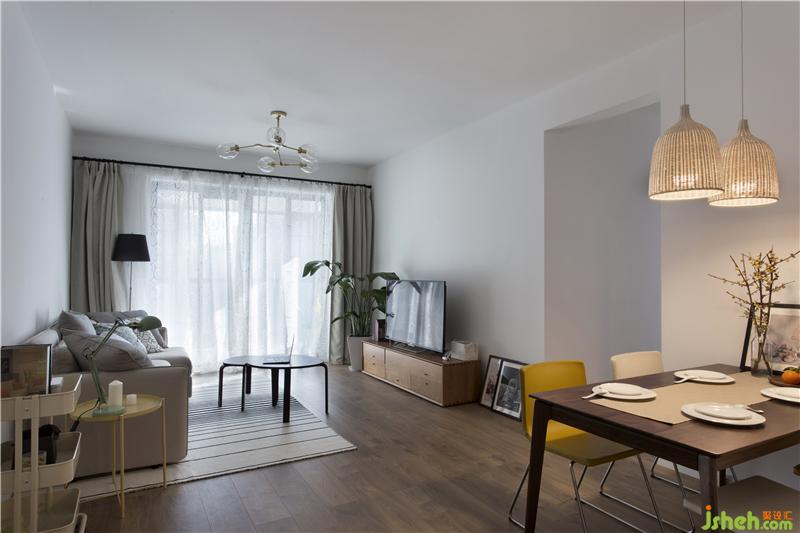 本案室內(nèi)設(shè)計師貫徹“少即是多"為原則,舍去吊頂、造型,舍去多余的裝飾??臻g中墻頂兩個面都以留白處理,通過整體的搭配營造空靈、空境的居住氛圍。