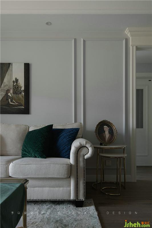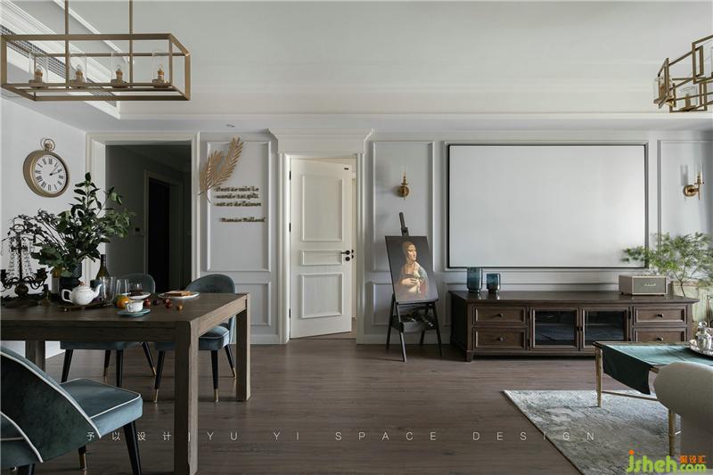 金色質(zhì)感的衣柜把手、金色質(zhì)感元素的臺燈、油畫裝飾畫與棕黃色床品進(jìn)行組合搭配,格外的愜意。掛在柜門前方的衣服也成為了畫面中裝飾的一部分,自然、隨性。