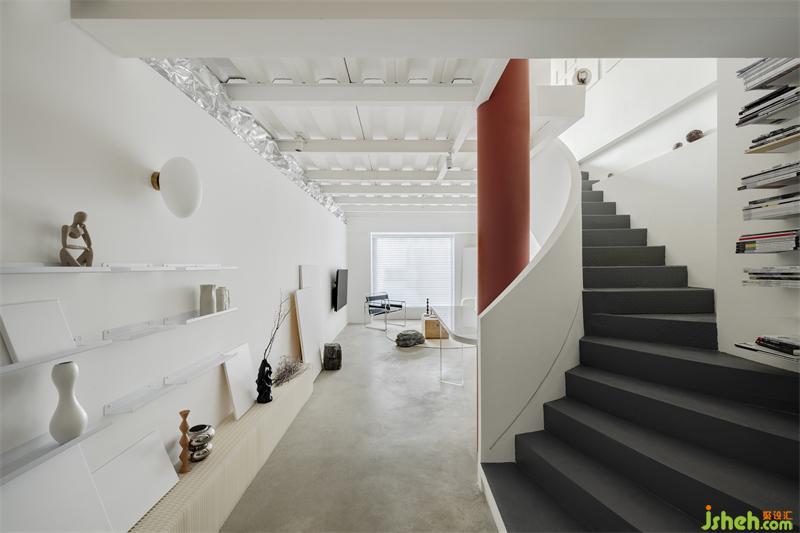 成都辦公室設(shè)計通過拆除原始的6步直形鋼架梯步