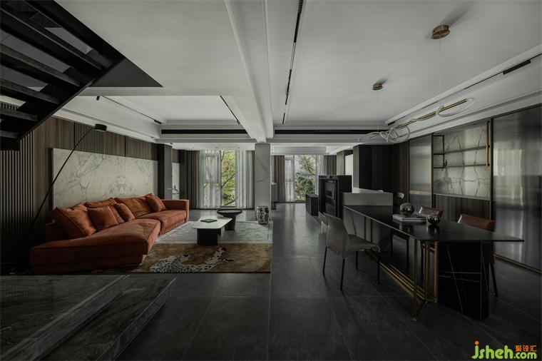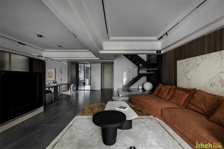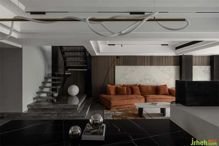 樓梯設計懸浮感,就像一件藝術(shù)品陳列于空間,增強空間張力感。