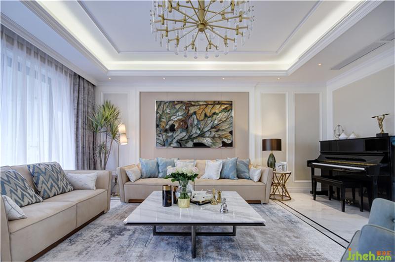 大面積清新的白、搭配淺灰藍(lán)地毯和裝飾畫牽引出歐式輕奢浪漫情韻,奠定客廳優(yōu)雅溫馨的基調(diào)。以淺色為主色調(diào),用少許亮色進(jìn)行點(diǎn)綴。使空間在和諧統(tǒng)一的基礎(chǔ)上更具視覺(jué)層次感,為空間平添幾許溫度與生機(jī)。歐式輕奢風(fēng)格往往會(huì)添加簡(jiǎn)潔曲線家私結(jié)合方正矩形及幾何框架的造型,使整個(gè)設(shè)計(jì)變得剛中有柔、恰得好處。用簡(jiǎn)約淡雅的裝飾突出品味,提升空間的藝術(shù)感,創(chuàng)造出輕奢化的歐式浪漫。水晶吊燈灑下華麗的光影,布藝沙發(fā)與石材茶幾剛?cè)岵?jì)彰顯典雅與時(shí)尚。少量的金屬色與淺色的空間色彩,優(yōu)雅里突顯了小小的浪漫。一些精致的花藝、茶具、無(wú)意間使整個(gè)空間更為親切鮮活,細(xì)節(jié)中盡顯設(shè)計(jì)師的匠心美意。以簡(jiǎn)約來(lái)突顯品質(zhì)感,整個(gè)空間縈繞優(yōu)雅沉穩(wěn)的氣息。窗外節(jié)奏如常,屋內(nèi)緩慢安寧,人生如一杯沒(méi)有加糖的咖啡,喝起來(lái)是苦澀,回味卻有久久不能退卻的余香。