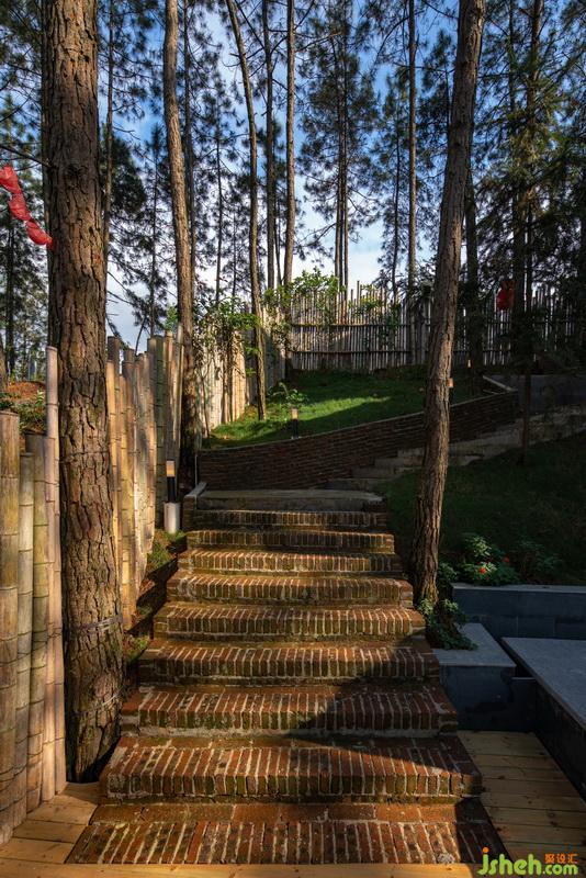 室外磚石階梯自成一派風(fēng)景,兩旁郁郁蔥蔥的樹木迫不及待的向你展露它最驕傲地姿態(tài),在山林當(dāng)中,找個(gè)清凈幽靜的所在,帶上一壺好酒,把酒言歡一場又如何?