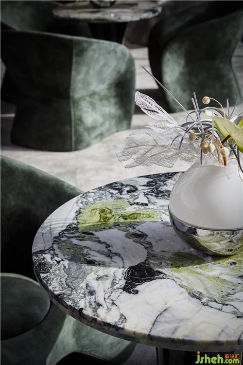 洽談區(qū)整個空間設(shè)計上追求與自然相融合。軟裝家具大量選用自建筑大師扎哈的設(shè)計作品,這也與扎哈一貫的設(shè)計理念相契合。