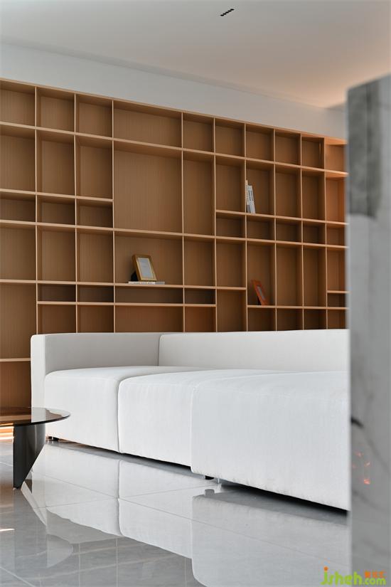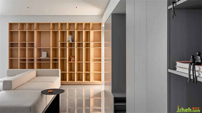 客廳的設(shè)計(jì)就以灰白作為主基調(diào),木色以立柜形式插入其間。室內(nèi)設(shè)計(jì)師木色的柜體也讓空間多了些自然的膚色,色塊的簡(jiǎn)化,簡(jiǎn)雅的視覺(jué)明度,加之木質(zhì)特有的柔和,室內(nèi)設(shè)計(jì)師使居室內(nèi)的情緒沉穩(wěn)放松。