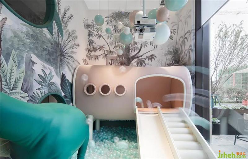 兒童區(qū)以趣味的恐龍世界,為都市的繁忙之余開辟一絲溫暖與童趣;回應東原人文關懷.趣味的人機互動增加了人與空間的交互,情景化的打造讓這般簡單的童趣互動在此形成了景中景,還原孩子童真的一面深圳售樓處設計。