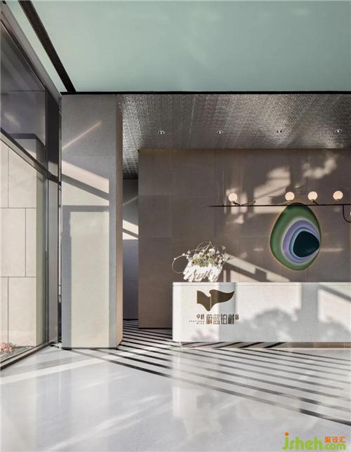前臺(tái)以大面積藝術(shù)漆打造簡(jiǎn)約現(xiàn)代基調(diào),空間延續(xù)當(dāng)?shù)厣剿厣匀の妒址ü蠢站G意生態(tài),將大鵬自然生態(tài)優(yōu)勢(shì)延伸于室內(nèi),為觀(guān)者打造生機(jī)盎然的初印象。