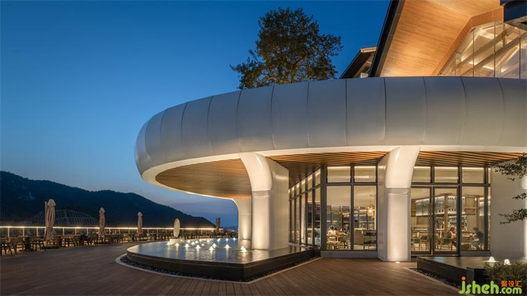 大堂立于山前,遠處群山的輪廓影影綽綽,距離感和朦朧感就像存在于詩歌里的美妙。酒店設(shè)計在這里,我們將“云霧在山林環(huán)繞”的美感狀態(tài)雕刻在空氣里,就像青山前等候的微風(fēng)。