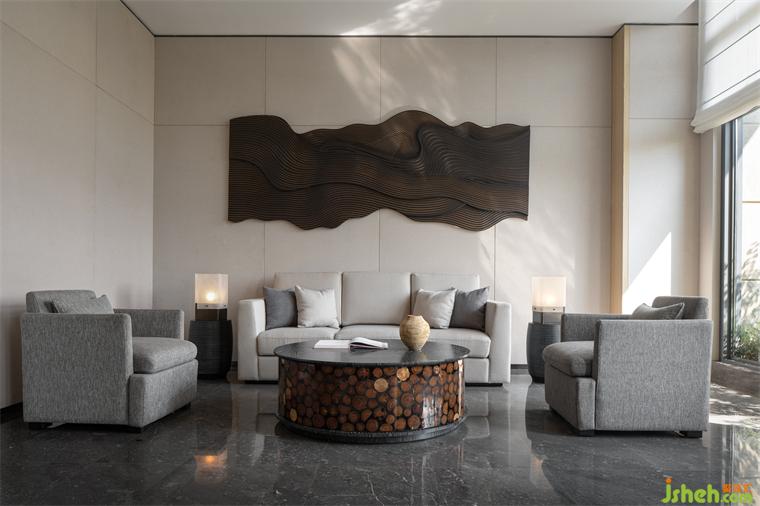 光影漸入,為室內(nèi)平添了一份通透。無處不在的藝術(shù)原木罐,融入又跳脫,表達著順應(yīng)自然的生命力,細致入微,仿若自然而然存在于此。