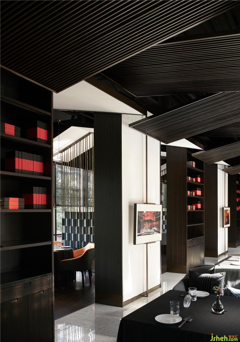 開放與半包區(qū)域,黑白建筑空間之下,已經(jīng)悄然構(gòu)建出別致的東方氣韻。