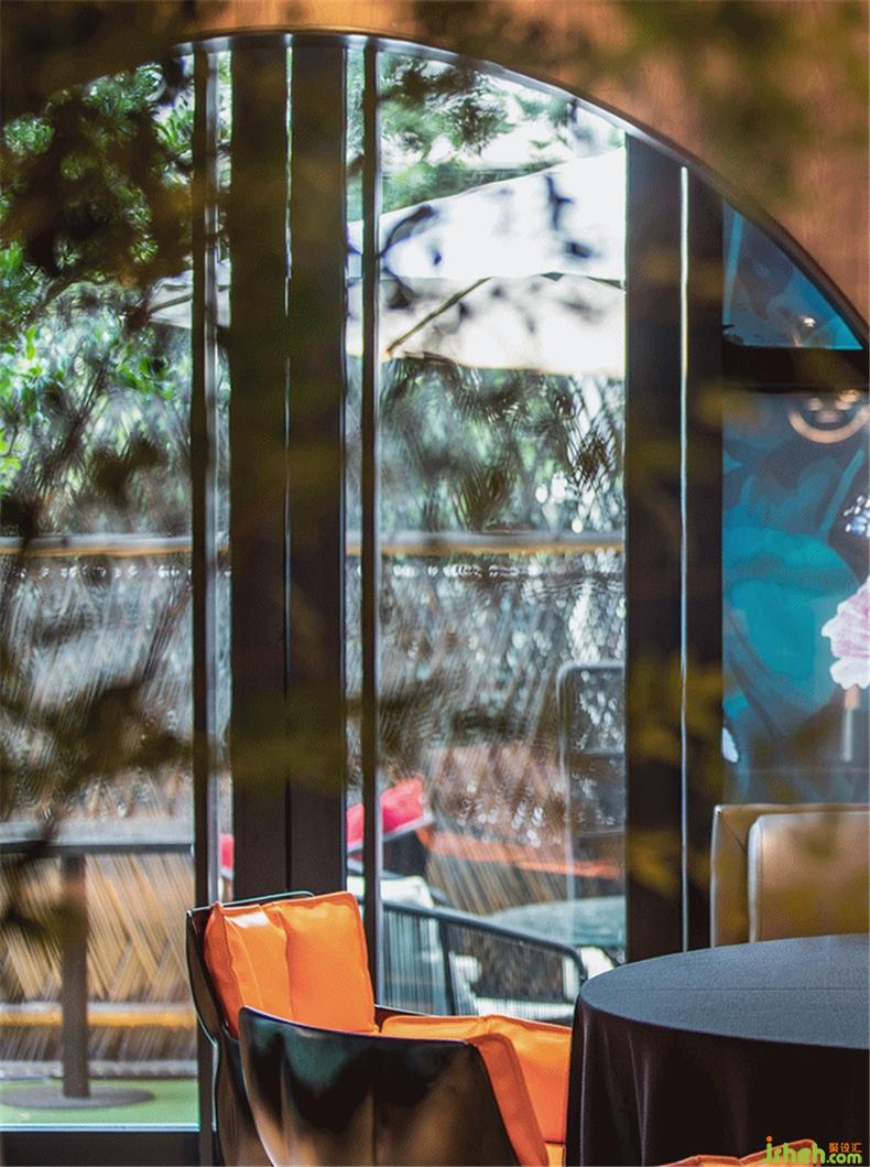 設(shè)計(jì)師用“抽象或具象”的符號(hào)植入進(jìn)每個(gè)不同的包間,以期營(yíng)造一種別具一格的現(xiàn)代東方意境。餐廳設(shè)計(jì)