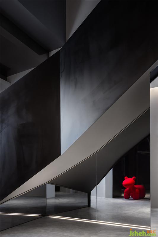 “業(yè)主也可以通過電梯的獨立動線上到樓上空間,跟辦公區(qū)的動線劃有所劃分開來?!八a充道。