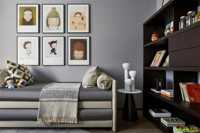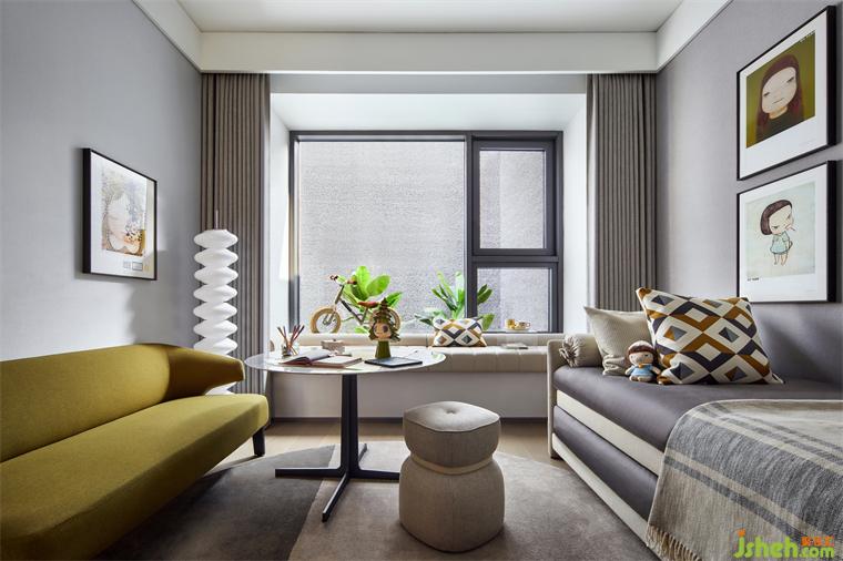 百變兒童房,可辦公或者陪伴小朋友學(xué)習(xí),也是孩子的一個(gè)安心獨(dú)立空間。根據(jù)生活的場(chǎng)景的多樣化,抽拉式的沙發(fā)也變成床,承載更多功能空間的使用。