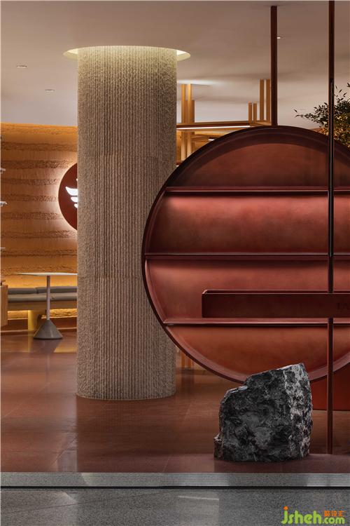 空間以具有80年歷史的大益茶品牌文化為基底,結(jié)合現(xiàn)代都市人的審美喜好和消費習慣,重新定義空間的視覺風格和功能體驗,空間整體設計為暗紅色的基調(diào),好似普洱茶茶湯的顏色,厚重且清透。在眾多零售店中鮮明且突出。
