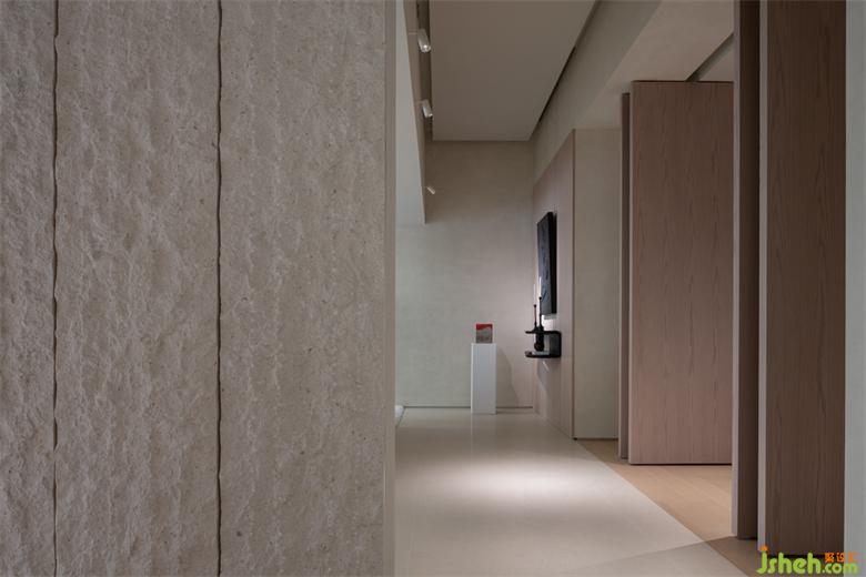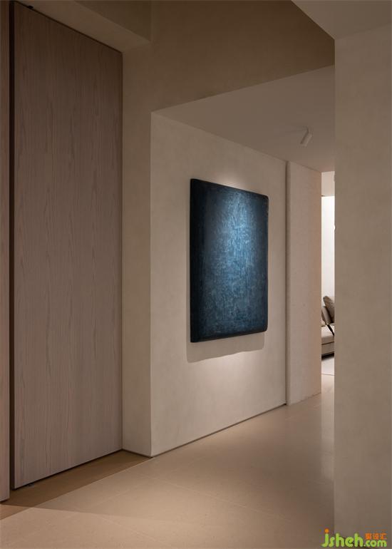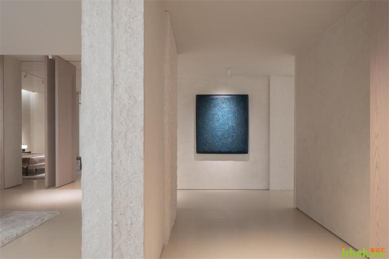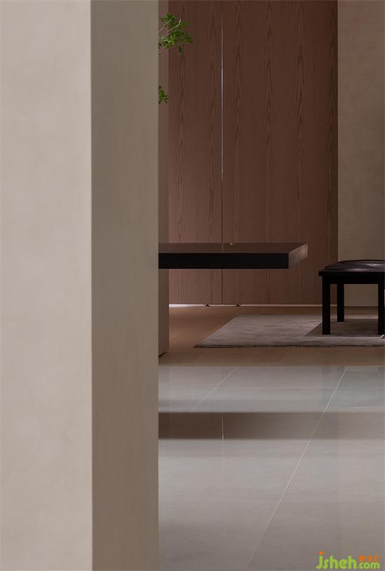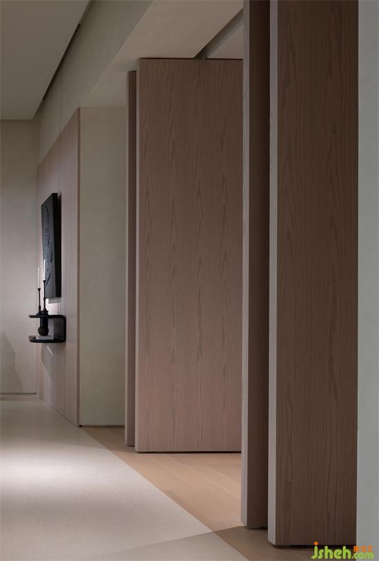 書房區(qū)的進(jìn)入給整體的空間帶來私密的感受,大扇木門的開啟,為進(jìn)入內(nèi)部空間和廊道的空間從視野上延展了深度和高度。