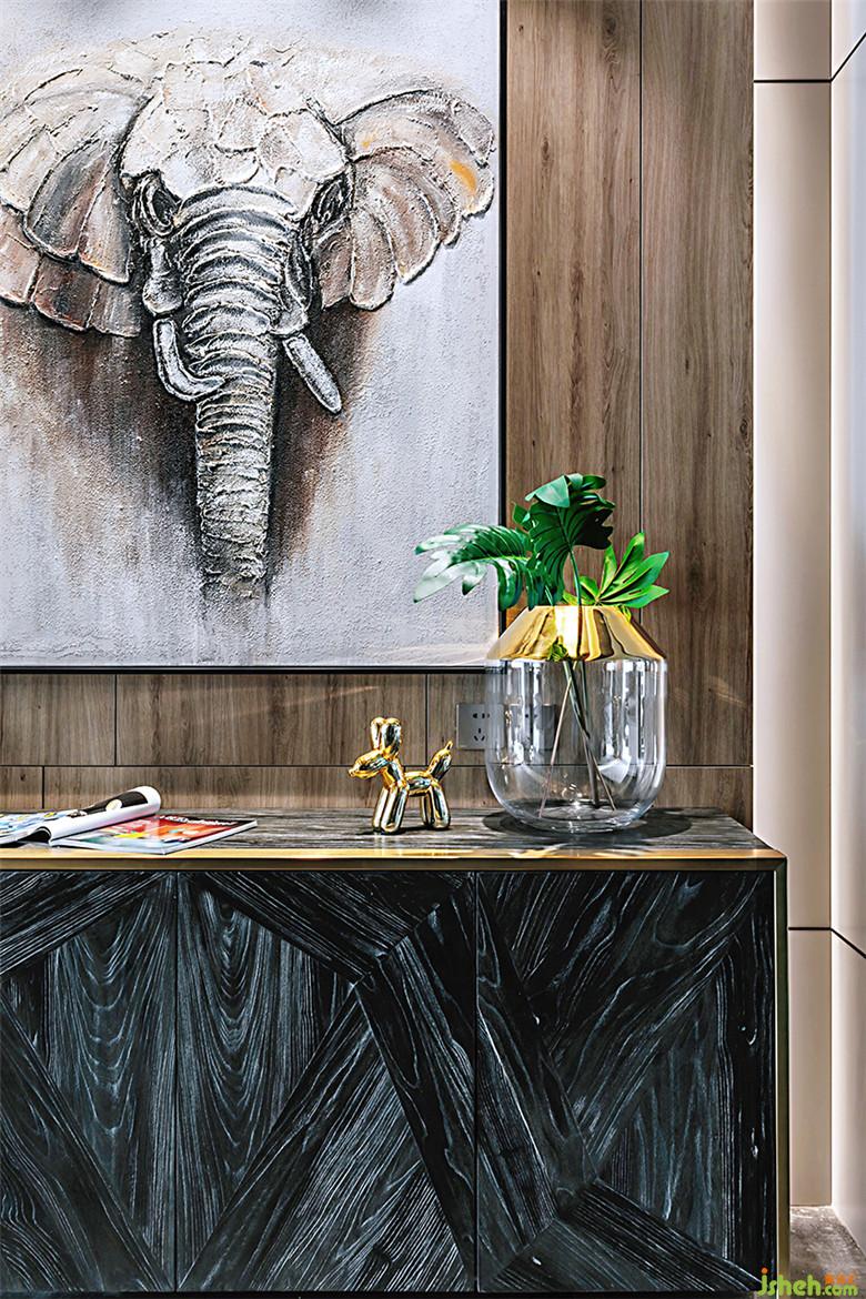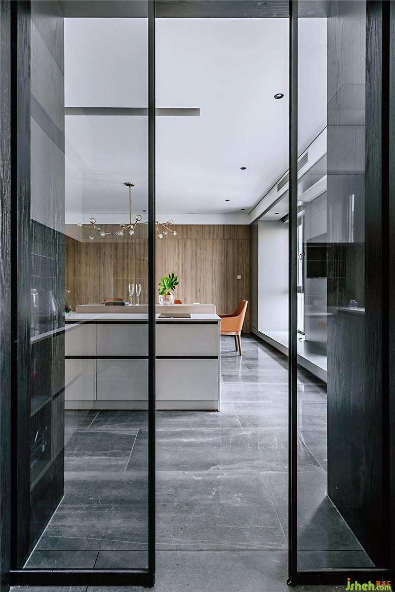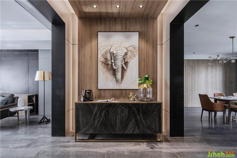 把生活的儀式感交給空間,穿過那扇隔絕紛擾外界的大門,豁然所見的便是玄關(guān)墻。在柔和的燈光下,輕輕洗滌心靈的雜質(zhì),一步步地將浮華卸去,把面具摘下,脫去堅強完美的外殼,重新審視最真實最柔軟的自己。