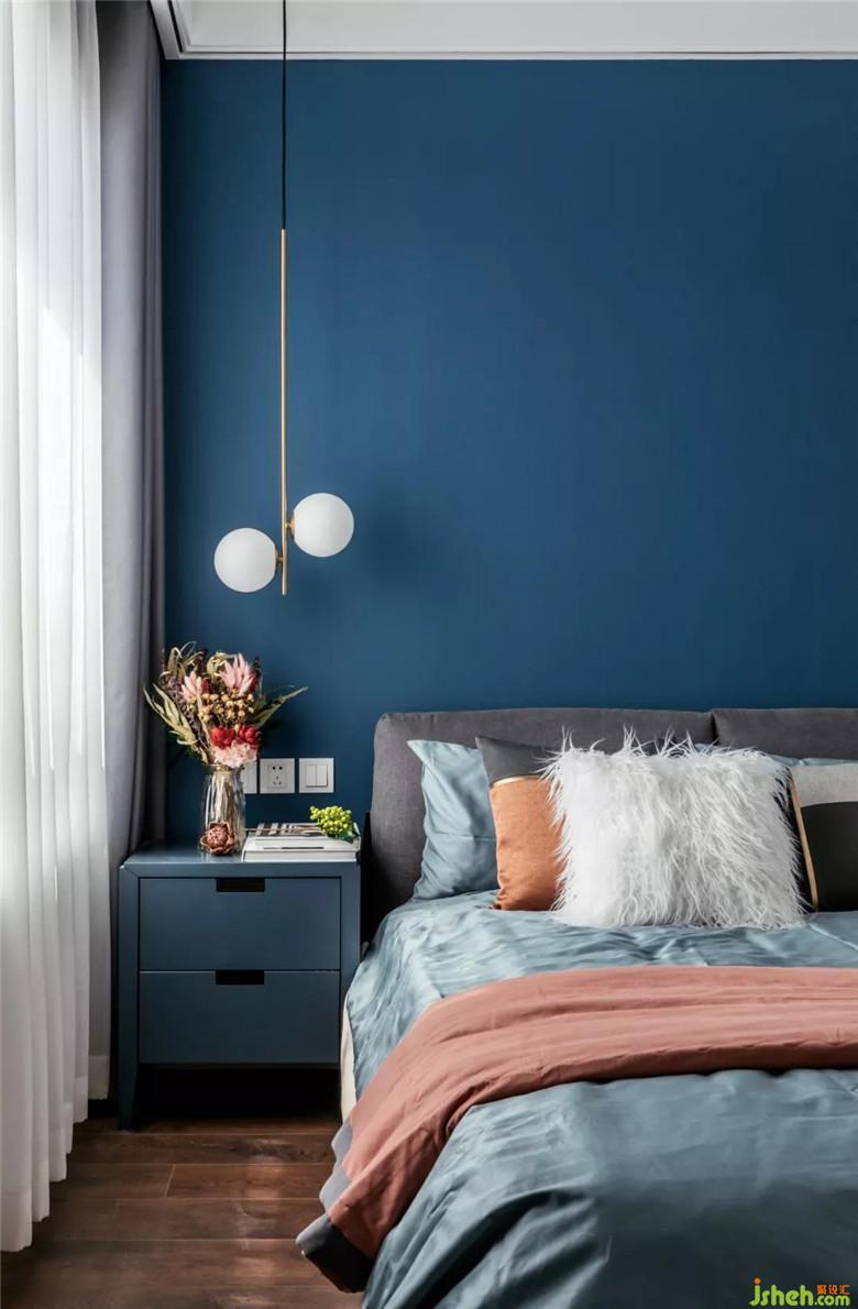 藍(lán)色為基調(diào)的客臥室,清晨第一縷陽光透過純白的紗簾鋪滿柔軟的床,嬌艷的鮮花香氣縈繞于鼻尖,浪漫而愜意。
