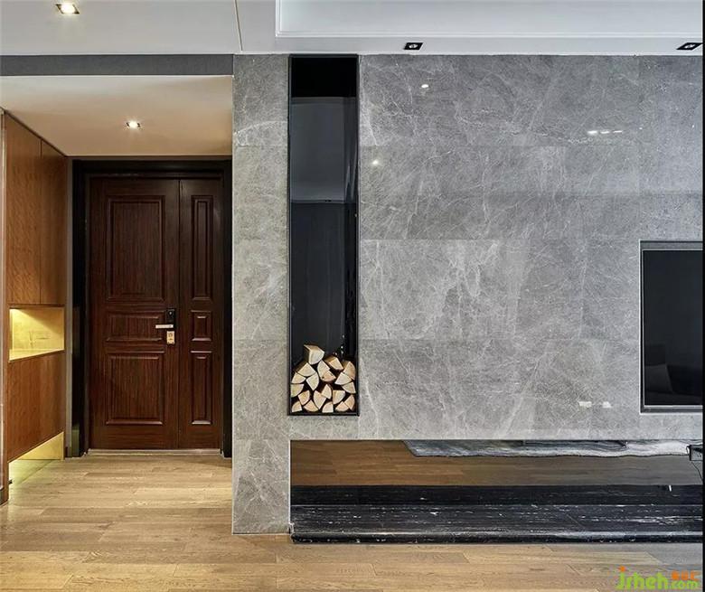 ▲電視背景墻采用了原始紋理的石材鋪設(shè),其中又匠心獨(dú)特地嵌入了一組壁爐,幾塊隨意堆砌的木柴。原本大氣硬朗的一隅,更添了幾分火熱的溫情。