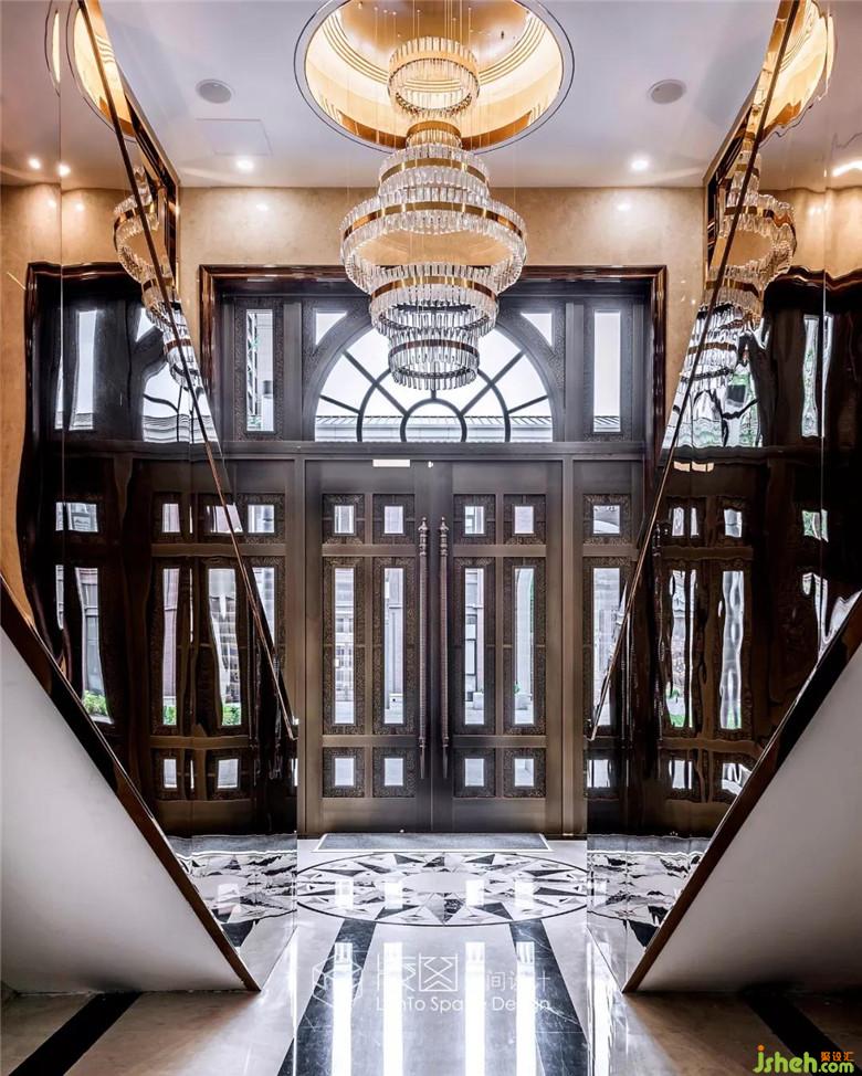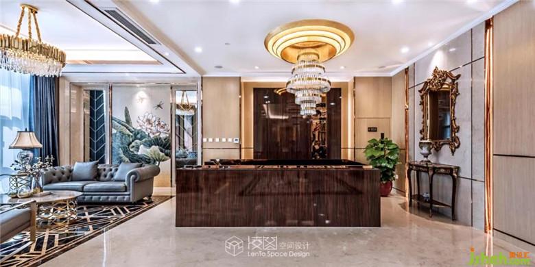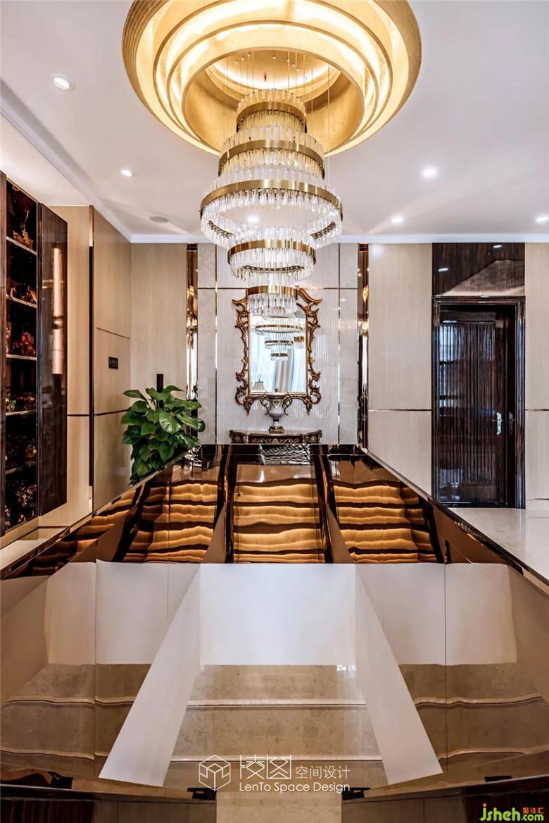 推門而入,挑高的空間格局朗闊大氣,在融入了黃銅元素的水晶吊燈的映襯之下光韻流轉(zhuǎn),從容間呈現(xiàn)著高貴的氣質(zhì),燈光與自然光影相互描摹,為這個(gè)空間鍍上一層經(jīng)久不散的溫煦柔光。