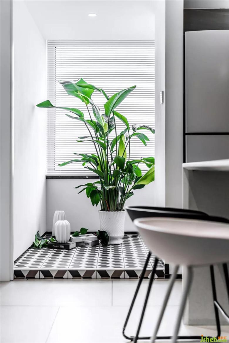 廚房陽臺被巧妙地分割為一處陽光綠植區(qū),主人既可以閑時擺弄花草,又兼具了日常家居的晾曬功能,同時又不失為一道靚麗的室內風景。
