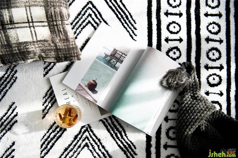 北歐元素在這里隨處可見,木地板覆蓋著整個(gè)空間的地面,黑白條紋混搭圖案的地毯,軟化了木地板所帶來的冷硬質(zhì)感,使得空間的氣氛變得柔和而溫暖。