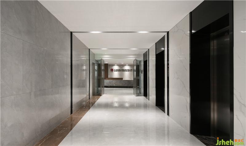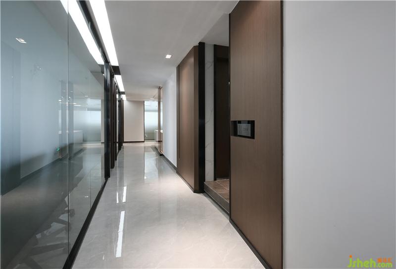 原平面為生硬的回字形布局,走廊過(guò)長(zhǎng),層高較矮,設(shè)計(jì)師以層次多變的跌級(jí)造型天花,通透的玻璃間墻為基礎(chǔ),以虛實(shí)結(jié)合的設(shè)計(jì)手法,讓空間凸顯層次感,打破走廊長(zhǎng)而規(guī)整的單調(diào)。