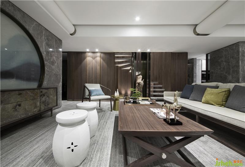 而客廳電視墻,則蘊含著對現(xiàn)代生活的思考:電視不應該是客廳的視覺中心,它是附屬品而不是必需品??蛷d最重要的功能是會客而不是看電視,所以電視被“畫”隱藏起來了。需要的時候,遙控打開“畫”,電視就出現(xiàn)了;不需要的時候,眼前是一幅很有意境的山水裝飾畫。