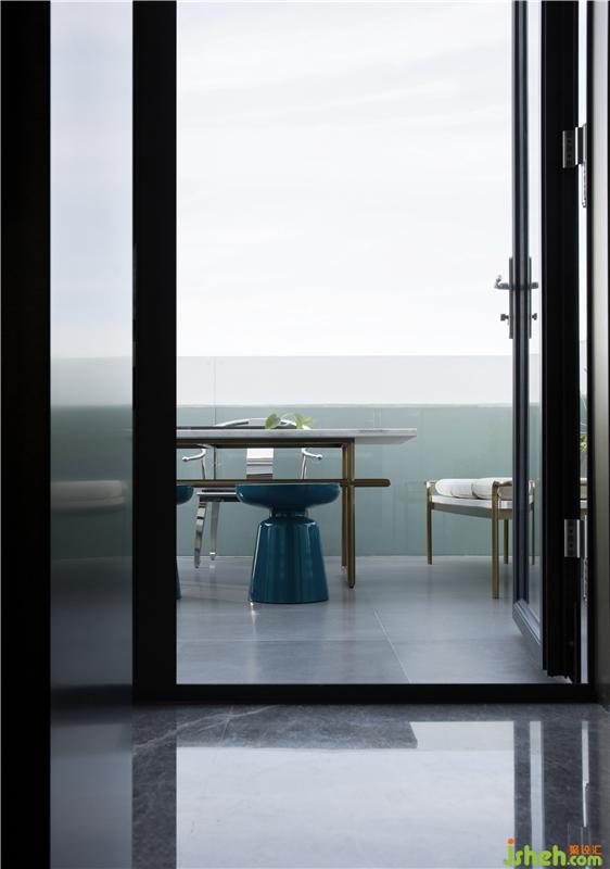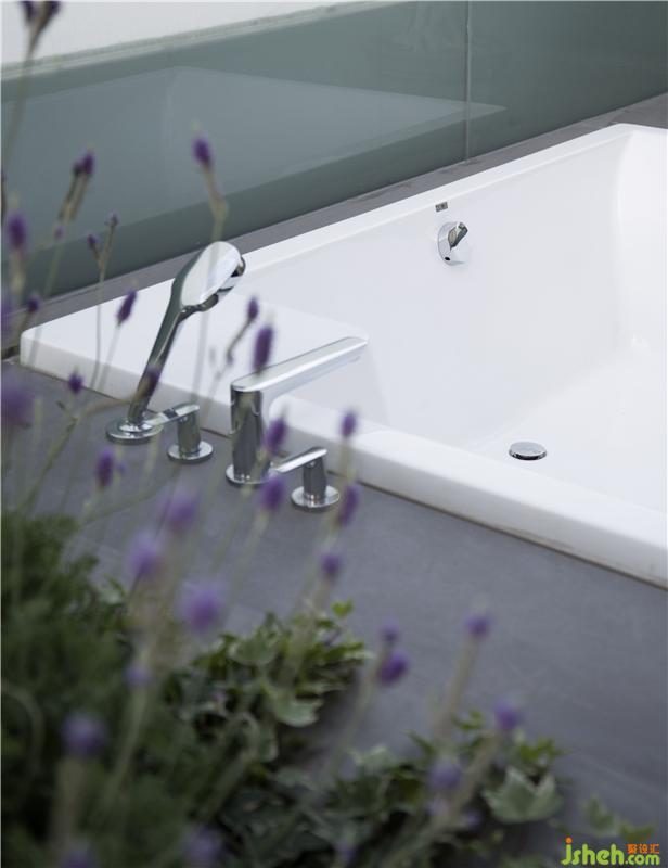 偌大的陽臺還隱藏著一個功能是泡澡區(qū),在磨砂玻璃的隱私保護下,能真正放松疲憊的身心。躺在浴缸內,望著天空,那無拘無束的感覺就是一幅人與自然完全融合的畫卷。室內設計師