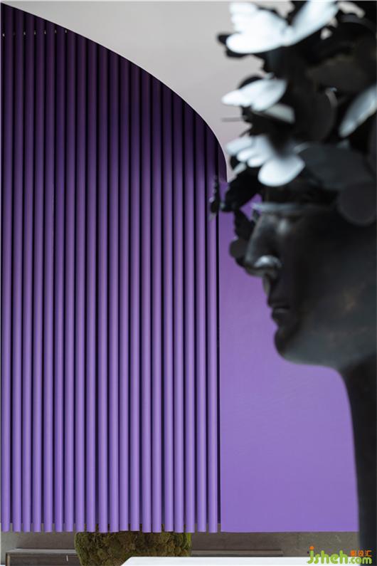 因為這片紫色的屏風(fēng),軟裝館得以在商場中有了相對的“私密性”,其中的溝通、創(chuàng)意、會談,有了不被打擾的可能。色彩是運(yùn)動獨立的態(tài)度,運(yùn)動是色彩保持清醒的自知。展廳設(shè)計伴隨著音樂律動,也可以感應(yīng)人流變換舞動的節(jié)奏和頻率。當(dāng)二者互為聯(lián)系,即刻產(chǎn)生新的派系,形成自由呼吸的新有機(jī)體。