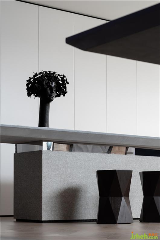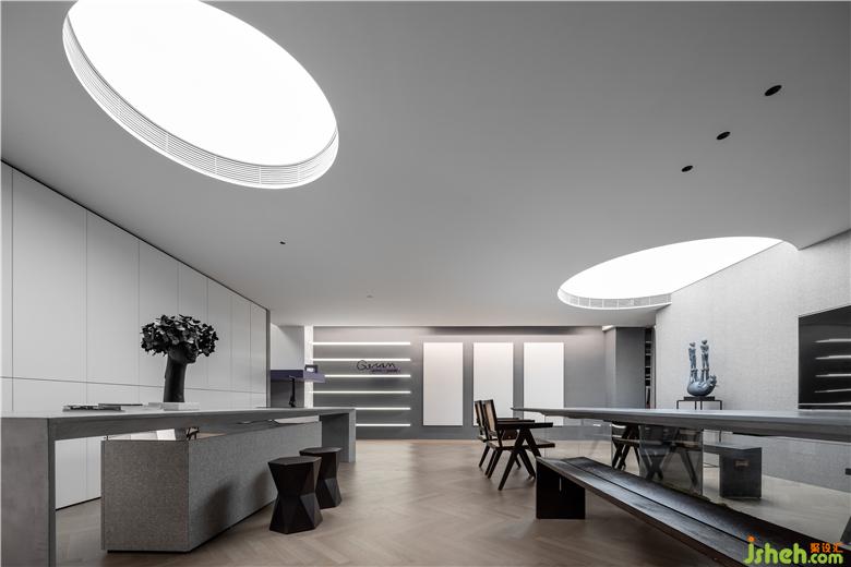 一層的入口處,我們希望映入眼簾的是一個藝術(shù)館,而非傳統(tǒng)銷售展廳,左側(cè)作為設(shè)計部,右側(cè)則是洽談區(qū)和出庫、入庫的場所。因它有獨立的生命,它想要的是彼此雙向的奔赴。被它的舞動吸引而來的人們,可以看到它的專業(yè)性。動線的展廳設(shè)計使顧客可以觀看到完整的制作流程再回到洽談區(qū)域。當(dāng)空間大且至簡時,每一處陳設(shè)細(xì)節(jié),都成為率性的魅力點與視線停留的關(guān)鍵點,呼喚你繼續(xù)探索的欲望。