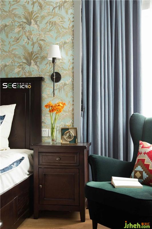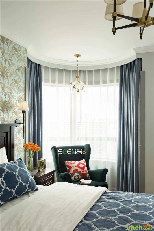 主臥床頭背景墻搭配古典美式大床,內(nèi)斂安靜,飽含韻味,古典與優(yōu)雅兩相宜,和諧的色彩搭配營(yíng)造出溫馨恬靜的舒適環(huán)境。