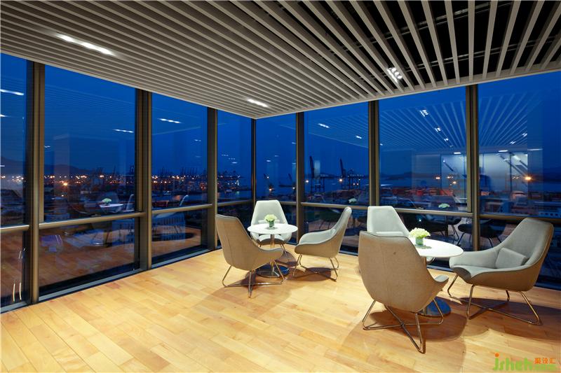 設(shè)計(jì)團(tuán)隊(duì)充分利用環(huán)境資源,利用玻璃幕墻的特性,將海景引入室內(nèi)環(huán)境,為辦公環(huán)境增添美好的天然景致。在室內(nèi)設(shè)計(jì)的裝飾元素上,設(shè)計(jì)團(tuán)隊(duì)結(jié)合現(xiàn)代、簡約的建筑外觀設(shè)計(jì),融入周大福相關(guān)產(chǎn)品的特征,提煉出裝飾元素進(jìn)行組合,將其運(yùn)用到室內(nèi)的天花、墻面、地面、燈具上使室內(nèi)各個空間形成內(nèi)在聯(lián)系,加強(qiáng)了室內(nèi)設(shè)計(jì)的主題概念性,營造出周大福企業(yè)文化的精髓——真誠,永恒。