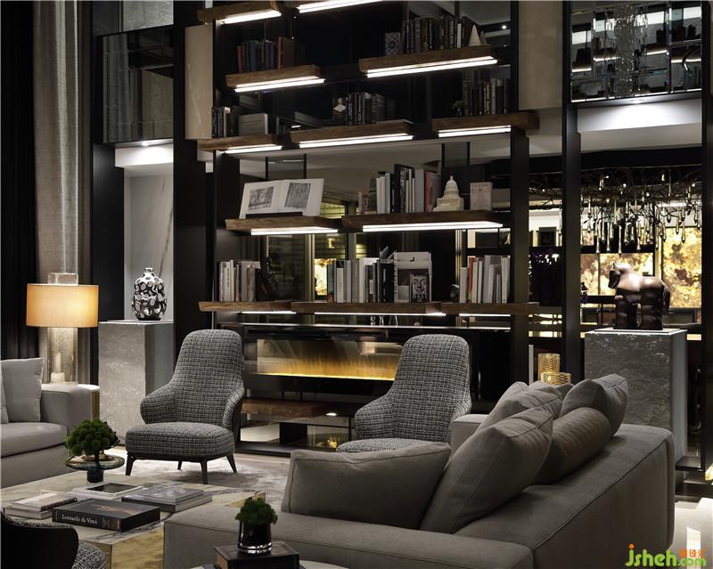 大。主臥房以雅致的柔光做為開端,現(xiàn)代思維下的設(shè)計(jì)表現(xiàn),多材質(zhì)轉(zhuǎn)換開啟了活潑的律動(dòng)。藝術(shù)與機(jī)能并重,營(yíng)造視覺氣氛與觸覺感知,連結(jié)主與從關(guān)系下的走道,指引的空間。浴室采凈白色,讓身心靈在潔凈色調(diào)下洗去一天的煩憂。造型展示柜,在圓弧空間內(nèi)不斷周旋層次延續(xù)至天花板,更衣室如同華麗的展示臺(tái),表現(xiàn)主人與眾不同的氣質(zhì)。電視墻運(yùn)用石材紋理分割大小形狀,亂紋拼貼,搭配金屬鍍鈦,更加貴氣。臥室區(qū)壁爐加上特殊手工銅制裝飾當(dāng)隔屏,空間顯得有層次不壓迫,床頭特殊手工裱板,化妝臺(tái),主臥浴室,精品區(qū),更衣