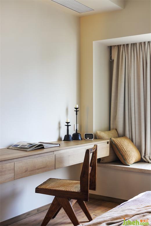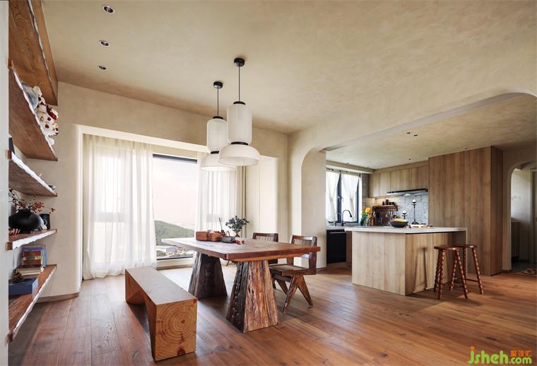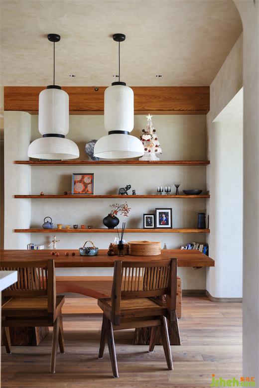 因為本案已經(jīng)有兩個陽臺了,所以在這里我們犧牲掉一個生活陽臺納入進(jìn)餐廳里面,擴(kuò)大餐廳空間,亞運(yùn)城天峯家裝設(shè)計營造更為松弛用餐的氛圍。值得一提的是餐邊柜上方的層板架,層板是我們在淘寶上購買回來的純實木,裝修公司為了讓它呈現(xiàn)出更自然的效果,請了師傅去做了藝術(shù)化的加工(一點點切出木頭的紋理和坑坑洼洼),讓它呈現(xiàn)出天然的木質(zhì)元素本該有的質(zhì)感,同時根據(jù)現(xiàn)場的設(shè)計請了油漆師傅現(xiàn)場調(diào)的顏色,才有了現(xiàn)在的效果。