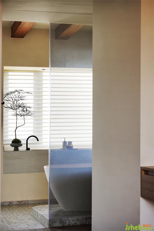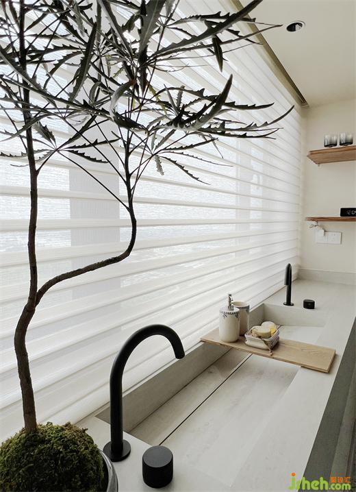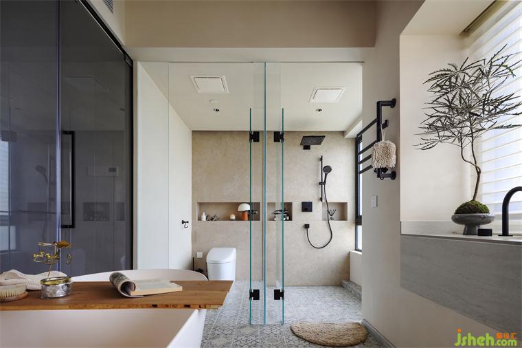 除此以外我自己最喜歡的是他們家這個(gè)衛(wèi)生間了,犧牲掉一個(gè)臥室做的衛(wèi)生間,亞運(yùn)城天峯家裝設(shè)計(jì)將舒適值做到最大化,摒棄傳統(tǒng)磚墻,在和臥室的鏈接處我們是用了夾絲玻璃,減輕空間面積,同時(shí)把大面積的光線引進(jìn)來(lái),使主臥空間更加明亮通透,浴缸是屋主夫婦強(qiáng)烈要求一定要有的功能,為了解決浴缸的下水問(wèn)題,我們?cè)谠「椎撞孔隽颂Ц?,柔和的曲線和利落的線條相結(jié)合,也讓這個(gè)區(qū)域生出一種儀式感來(lái)。因?yàn)橹餍l(wèi)是并了一個(gè)小臥室進(jìn)來(lái)的,所以它和原先的衛(wèi)生間區(qū)域存在一個(gè)層高上的落差,裝修公司迎合建筑本身裸露出來(lái)的梁位結(jié)構(gòu),我們?cè)O(shè)計(jì)了幾條一樣木飾面假梁,加深空間構(gòu)成感。地面手繪的小花磚,臺(tái)面質(zhì)樸的洞石巖板,再加上天面的原木梁,整體呈現(xiàn)出別樣的異域風(fēng)情,在兩扇窗景下看到的是得天獨(dú)厚的江景,只需一抬眼便能將這幅斑斕清新的自然畫(huà)卷盡收眼底,整體營(yíng)造出在家即度假的體驗(yàn)感。