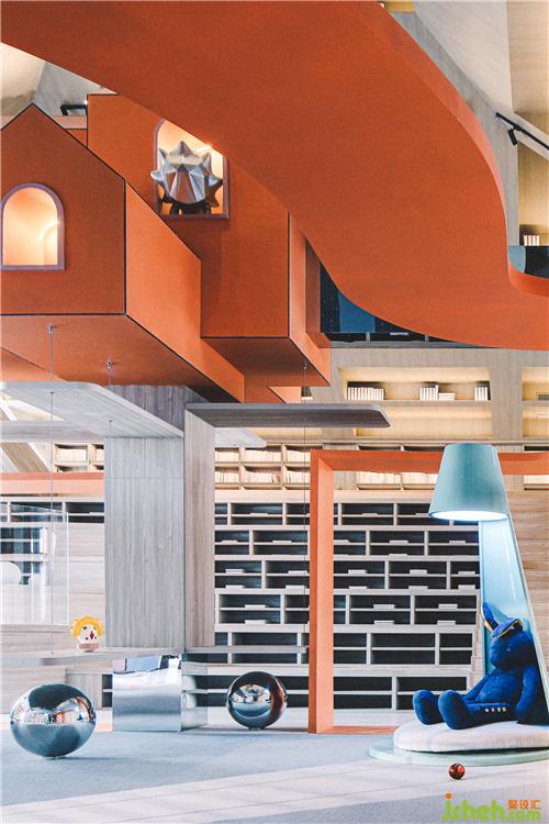 顛覆傳統(tǒng)閱讀的核心理念。在不同的空間,設(shè)計師以不同的材質(zhì)和色彩簡單明了劃分出核心體塊,木色的主基調(diào),以不同的盒子打造出不同的閱讀形態(tài),讓閱讀充滿了不同形態(tài)的趣味性變化。