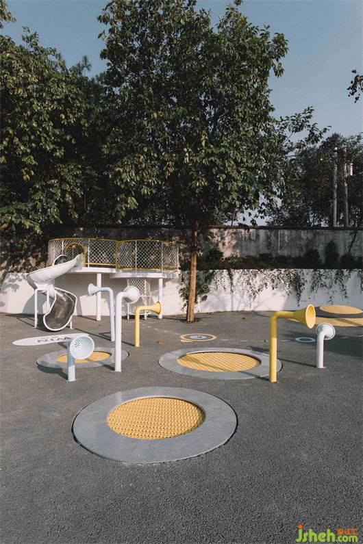 整個廣場如同展開的一幅巨型棋盤,農(nóng)場改造設(shè)計師在保留原有區(qū)塊功能的基礎(chǔ)上,疊加“穿云摘星”、“云巔漫步”等以云為主題元素的智趣游戲,將活動場所與飛行棋相結(jié)合,不斷激發(fā)著孩子豐富的想象力與創(chuàng)造力。
