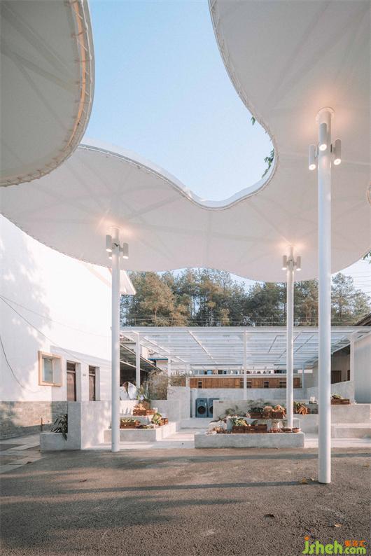 從可持續(xù)發(fā)展與設(shè)計實踐出發(fā),空間在天然材質(zhì)、蓄能節(jié)水、回收減排等一系列環(huán)保措施中實現(xiàn)“自我造血”。同時以堅持“生活即教育”為理念,基于當?shù)刈匀簧鷳B(tài)的閉環(huán)鏈合理改造、科學種植,在晾曬區(qū)(生活空間)與農(nóng)場區(qū)(勞動基地)動靜中為孩子打開了新世界的一扇窗口。