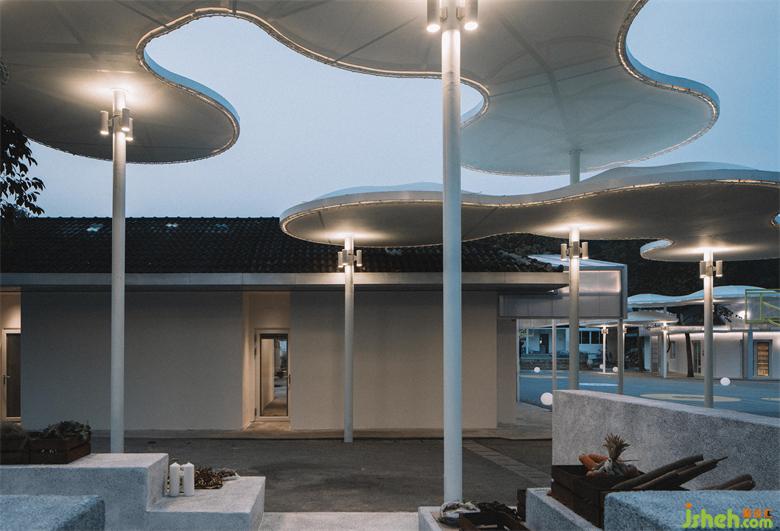 公共衛(wèi)生間利用“雨水為先,自來水為后”的系統(tǒng)設(shè)置收集雨水,同時采用太陽能照明的形式,傳達自然環(huán)保的理念。材質(zhì)的挑選上以自然明亮為主,陽光板屋頂呼應(yīng)了與前場的延續(xù)性,在公共與私密的多功能空間中,讓孩子養(yǎng)成健康的生活習慣,同時給予相應(yīng)的尊重。