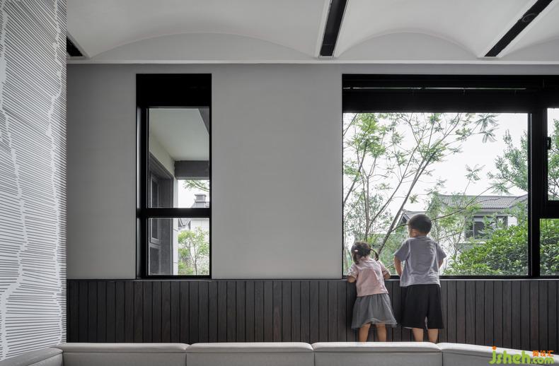 鸚鵡主題民宿特意設(shè)置了5米4的通高挑空,客廳整個(gè)做成了一個(gè)可以玩耍交流的小世界。不止于親子,學(xué)會(huì)溝通與交流是孩子們進(jìn)入社會(huì)重要的一環(huán)。如何表達(dá)自己,如何讓對(duì)方知道自己真正的想法而不是通過(guò)吆喝,爭(zhēng)吵,向?qū)Ψ絺鬟_(dá)自己真正的感受。室內(nèi)設(shè)計(jì)師鸚鵡在人們心中一直是能言善道的角色,設(shè)計(jì)團(tuán)隊(duì)希望通過(guò)鸚鵡主題戶型,超大共享客廳中,家長(zhǎng)和孩子能夠一起在一個(gè)叢林般的夢(mèng)幻世界,來(lái)一次心靈的交流,表達(dá)內(nèi)心的愛(ài)意。