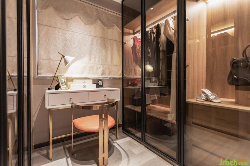 每個(gè)人都?jí)粝胗袀€(gè)屬于自己的衣帽間。衣帽間并不是大戶(hù)型的專(zhuān)屬,它有著多種多樣的形態(tài),二字型的衣帽間搭配一個(gè)化妝桌已經(jīng)完美呈現(xiàn)出一個(gè)衣帽間所具有的功能。