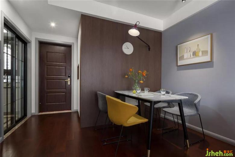 門廳的鞋柜原來豬肝紅的柜門換成了白色,進入門廳后首先就是餐廳,餐廳選用白色爵士白大理石桌面餐桌,墻面整體KD板整潔美觀更好打理,廚房門口的一小塊地方刷的半截磁性黑板漆,可以是孩子的早教板,也可以是家人的留言板。