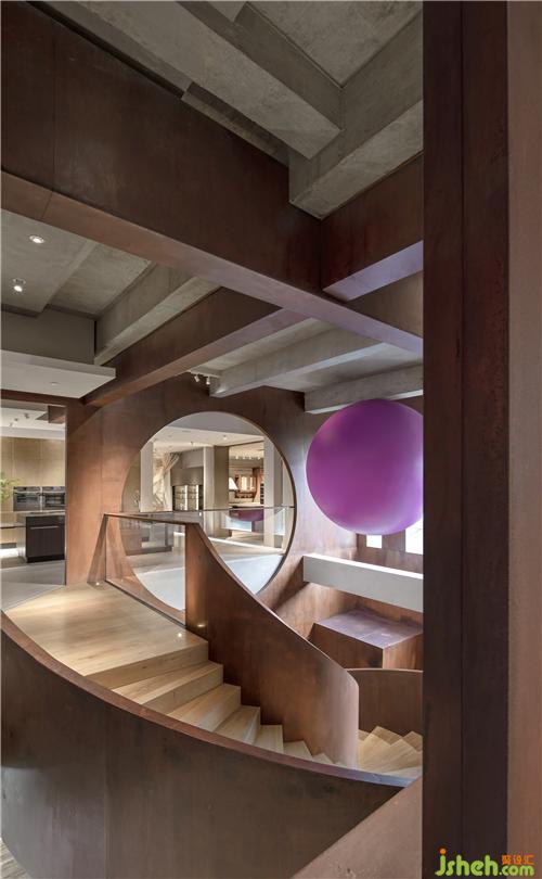 利用構(gòu)架和剪紙塑造出來的空間總是感覺缺乏一些內(nèi)容;似乎顯得過分理性了,繼而沿用銹板材質(zhì)設(shè)計一個自由交叉的線性裝置,使空間的構(gòu)成更具有靈動性。