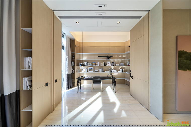 別墅裝修設(shè)計(jì)師將原本的套房改造為書房,設(shè)置電動大趟門可滿足不同場景轉(zhuǎn)換。可獨(dú)處冥想或閱讀辦公,推門走出就能置身戶外呼吸新鮮空氣,閑時與家人朋友私語暢聊,空氣與能量似乎也自由地流轉(zhuǎn)起來。